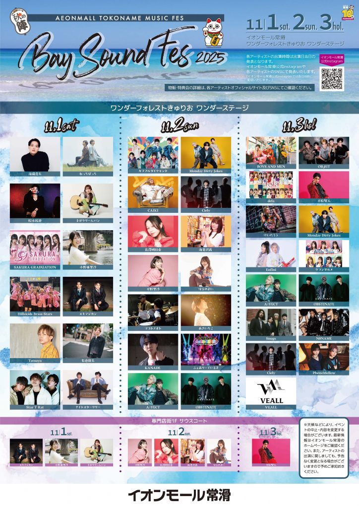 2025年11月1日(土)〜3日(月・祝)にイオンモール常滑 ワンダーフォレストきゅりお ワンダーステージで行われる「AEONMALL TOKONAME MUSIC FES Bay Sound Fes 2025」にORβITの出演が決定いたしました!