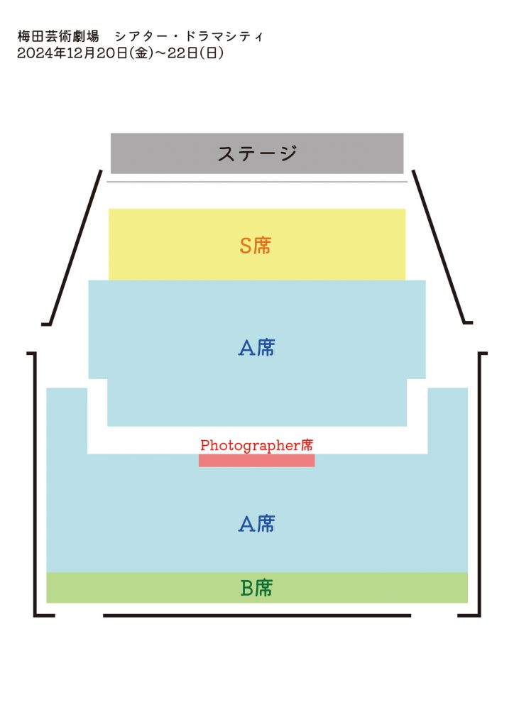 ※「PHOTOGRAPHER席」では、公演中の常時写真撮影が可能です。全席対象のフォトタイムの設定はございません。